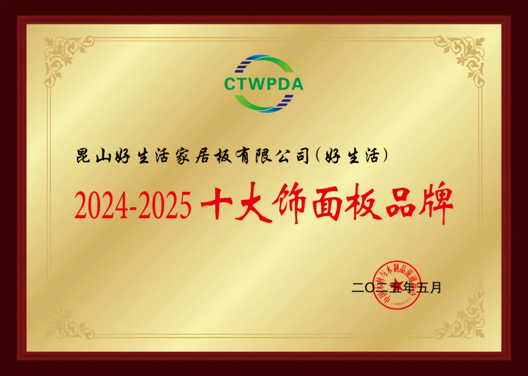 喜訊丨好生活榮膺“2024-2025年度十大飾面板品牌”
