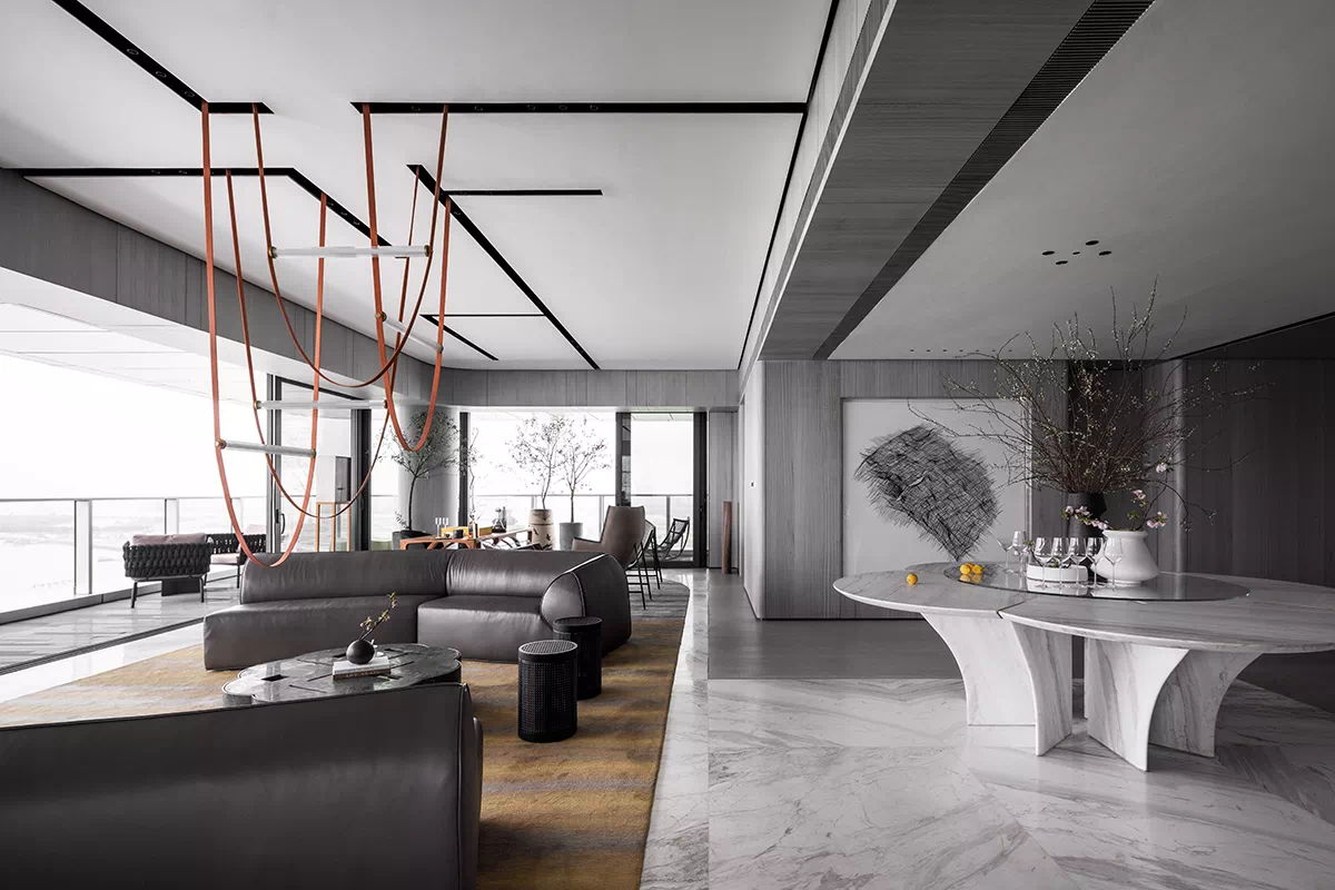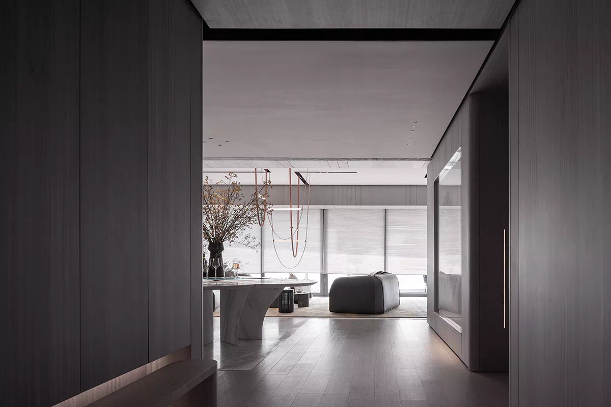 橡木兼具色彩與線條的柔和。朦朧霧感延伸視覺的流動(dòng)性,融合并靈動(dòng)性整個(gè)空間。原木元素的點(diǎn)綴為現(xiàn)代氣息帶來適度的溫和感。